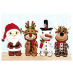 This is a pattern to make these 4 stumpkins: Santa, a reindeer, a snowman and a moose! They are 11" tall. They are weighted and can stand alone. They are made from cotton, felt, fleece and fur fabrics. The body pattern is the same for all 4 stumpkins - you make each head separately and attach it to the top of the body.
